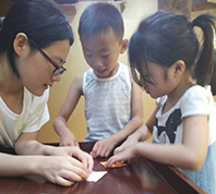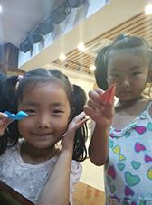 七天的生活,让我知道,和孩子们在一起真的可以再做一回孩子,虽然一定程度上我们现在也是孩子。依然清楚地记得第一天和小朋友们见面,一个个活泼开朗,而又因为初次见面稍带羞涩。然而,这并不影响什么,他们勇敢的在其他同学和四位“老师”面前介绍自己和认识的伙伴,自信地唱歌,跳小苹果舞蹈,友爱地拉手拥抱。七天里,我们在游戏中带领他们学习:在发挥自由想象给简笔画涂色的活动中,穿花衣服有着五色口袋鞋子上还有鞋带的各种独特的机器猫、有着十多种颜色的荷花、红脸的白雪公主,孩子们想象力让我们惊喜叹服;在《虫儿飞》歌曲和手语学习中,七岁的小朋友表现出超乎意料的认真态度和学习能力;在折纸游戏中,他们将各种图案画在彩色纸片上,然后用细小的手指努力地折出飞机纸鹤小船送给自己喜欢的人;在给其中两个小朋友过生日时,每一个孩子都卖力地唱着生日快乐歌拍着手掌,看着他们敷满奶油的小脸,那种喜爱的心情真的难以言说……除此之外,呈现在脑海中的,还有太多太多的画面。七天,时间不长,记忆很满。