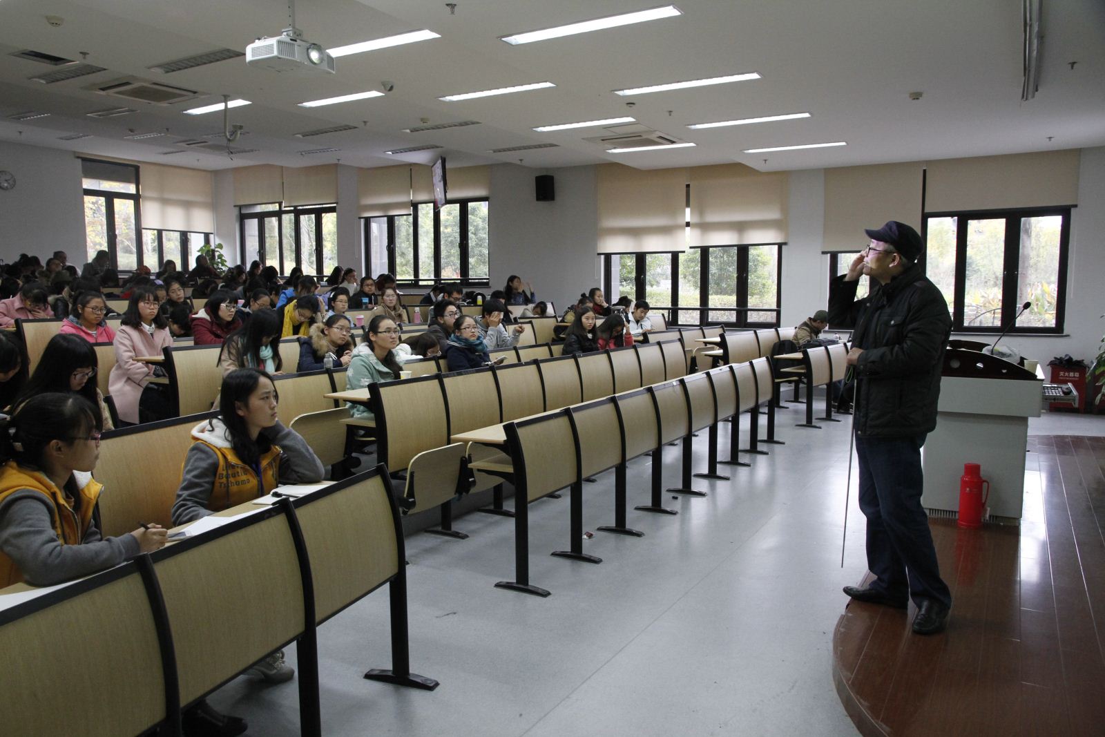 11月25日下午,恕园13号楼101教室人头济济。教育学院就业指导中心诚邀浙江传媒学院蔡国栋老师为同学们带来了以“职业化生存:何处寻找大智慧”为主题的讲座,为对未来职业生存迷茫的同学指点迷津。