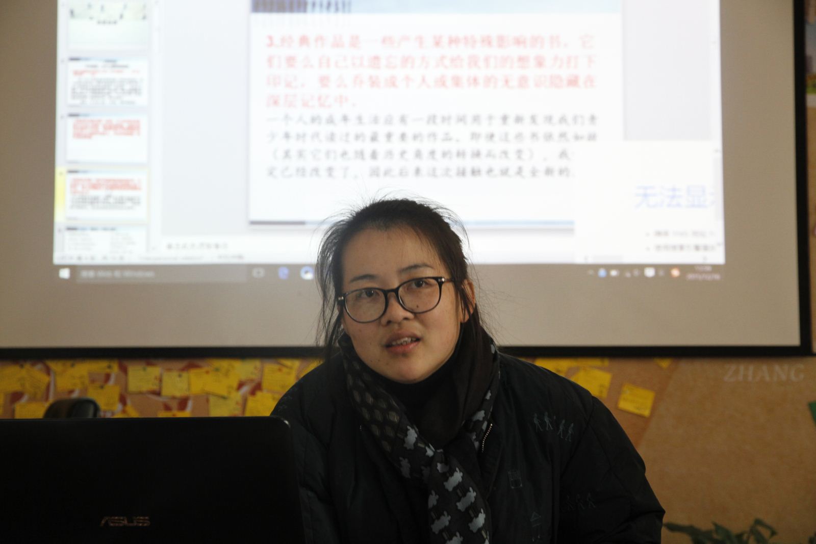 “经典是我在读而不是我正在读的书”,张老师从德国教育家卡尔威特对“经典”的十四个定义切入,在分析文人著作特色的同时,剖析现代文学的现状,结合自身的阅读经历,具体阐述了阅读经典的必要性与阅读对人的启迪意义。座谈中,张老师与学生分享了穆旦的《诗八首》,通过朗读引导学生感受作者的蕴意。分享之余,张老师还解答了同学们有关阅读方面的疑惑,进一步增强学生阅读鉴赏能力。