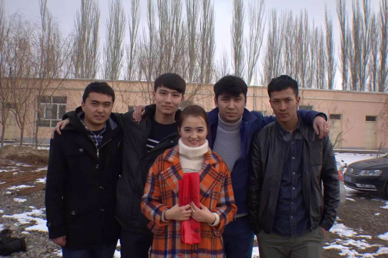 阿克苏地区温宿县阿热勒镇尤喀克买里村是一个贫困、偏僻的村庄。这里交通不便,小学资源有限,设备不全,教学环境较差。目前尤喀克买里村小学只有一到三年级,总共只有4名教职工和70多名学生。“疆爱”团队了解到当地情况,希望对他们进行一些帮助。昨日,团队成员冒着大雪来到这个教学点,向七十名学生捐赠了七十套完整的学习文具,并向四名教职工捐赠了四套全新的办公用具。蓝天下,背景是光秃秃的树杈和白皑皑的雪,眼前却是得到公益帮助的师生们的灿烂笑容。此行中,迪力胡马尔感慨道:“我不是一个很有钱的大学生,但我是一个心里很富有的女孩,我们一起传递疆爱。今天其实很冷,但看到等待着的师生们,我们的心里特别暖。”