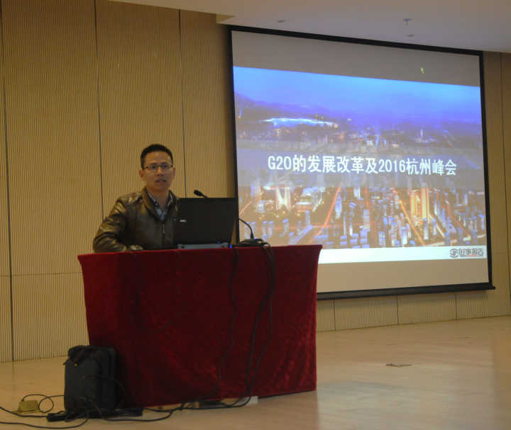 讲座以“大学所在的城市是大学生无形的资源”为线索,详细阐述了G20的发展改革以及2016杭州峰会的相关内容。讲座中,沈老师向学生介绍了G20的发展历程和三大特点,并强调G20在全球经济治理中所发挥的积极作用与其在不同领域和层次上的遗留问题,尤其提到它对中国发展的影响。随后,沈老师又以“G20杭州峰会”为主线,展示了峰会的各项成果,使同学们对余温未尽的G20杭州峰会有了更深入的了解,取得知识储备和思想意识上的双丰收。