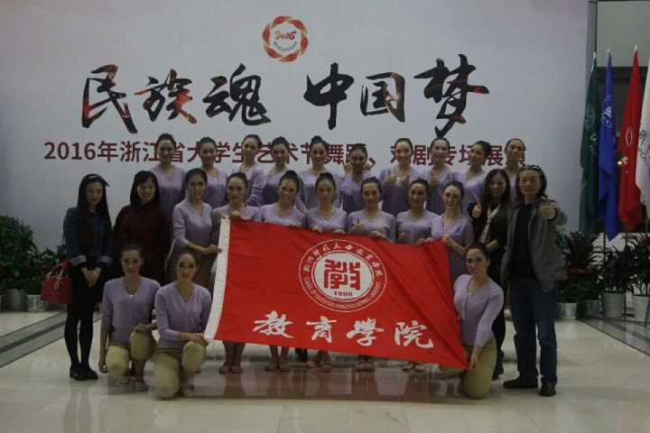 2016年 11月2日,在浙江省大学生艺术节暨艺术展示活动中,我院二十名学生组成的舞蹈队伍,在王嘉歆婳和郑信雪老师的指导下,凭借舞蹈作品《我等你》荣获得大艺节舞蹈类别的一等奖。该舞蹈淋漓展现了教育学院六艺特色中的“舞”之魅力,通过专业化高水平的表演将学院内优秀的艺术成果呈现于社会,实现教艺精髓的延伸。这支由特教131、小教132、小教134同学共同组成舞蹈团队在第二届行知教育奖评比中荣获教育才艺奖(团体)。本次报道采访了舞蹈团队的一员,来自特教131班李舒怡,带我们走进舞蹈背后的故事。