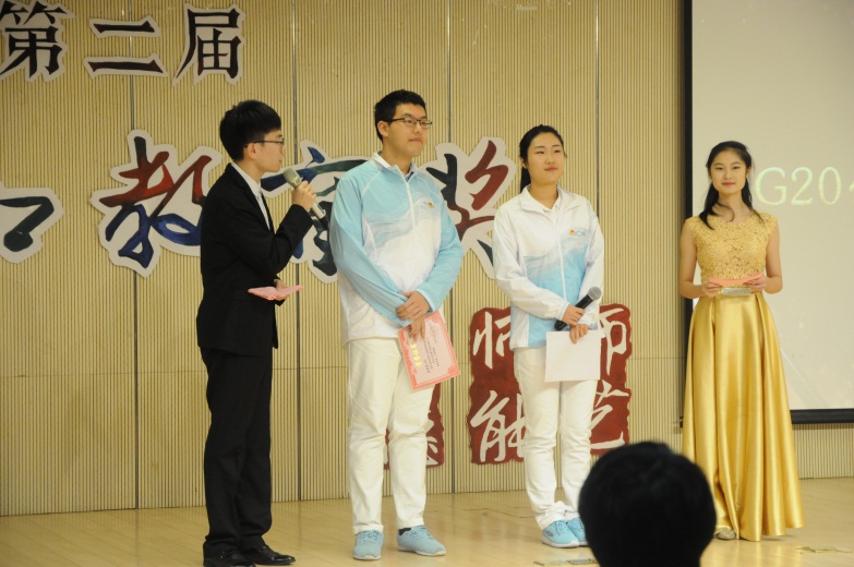 优秀志愿者获得者胡艺卿、金振文同学跟大家分享参加G20志愿者工作的感受