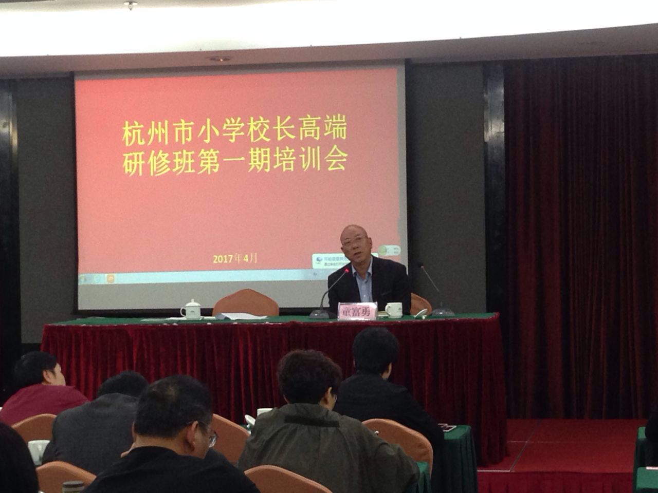 4月26日上午,杭州市小学校长高端研修班开班仪式在临安市委党校举行,杭州市教育局组织处仰国庭处长、杭州市小学教育管理研究会秘书长郑水泉、杭师大教育学院院长童富勇教授,杭师大教育学院小学教育系副主任、高端班班主任吕映教授以及杭州市教育局有关同志出席了此次开班仪式。本次研修班的学员为杭州市各小学名校长,共64人。据悉此次高端研修班是由杭州市教育局与杭师大教育学院共同筹划举办,旨在提高杭州市小学校长的理论水平与专业能力。