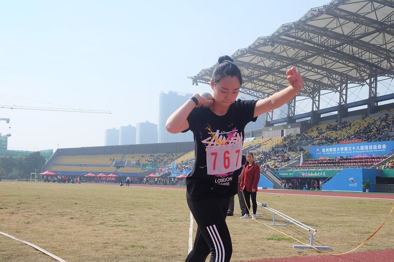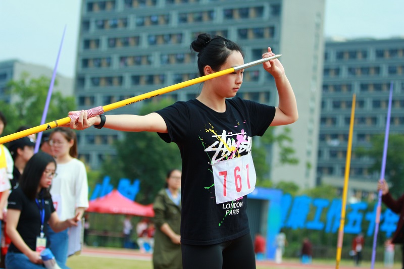 在今年的运动会上,有一位运动员的表现格外引人注目。她就是获得了女子甲组标枪第一名、女子铅球项目第四名,来自经亨颐学院文科实验171班的沈慕禛。