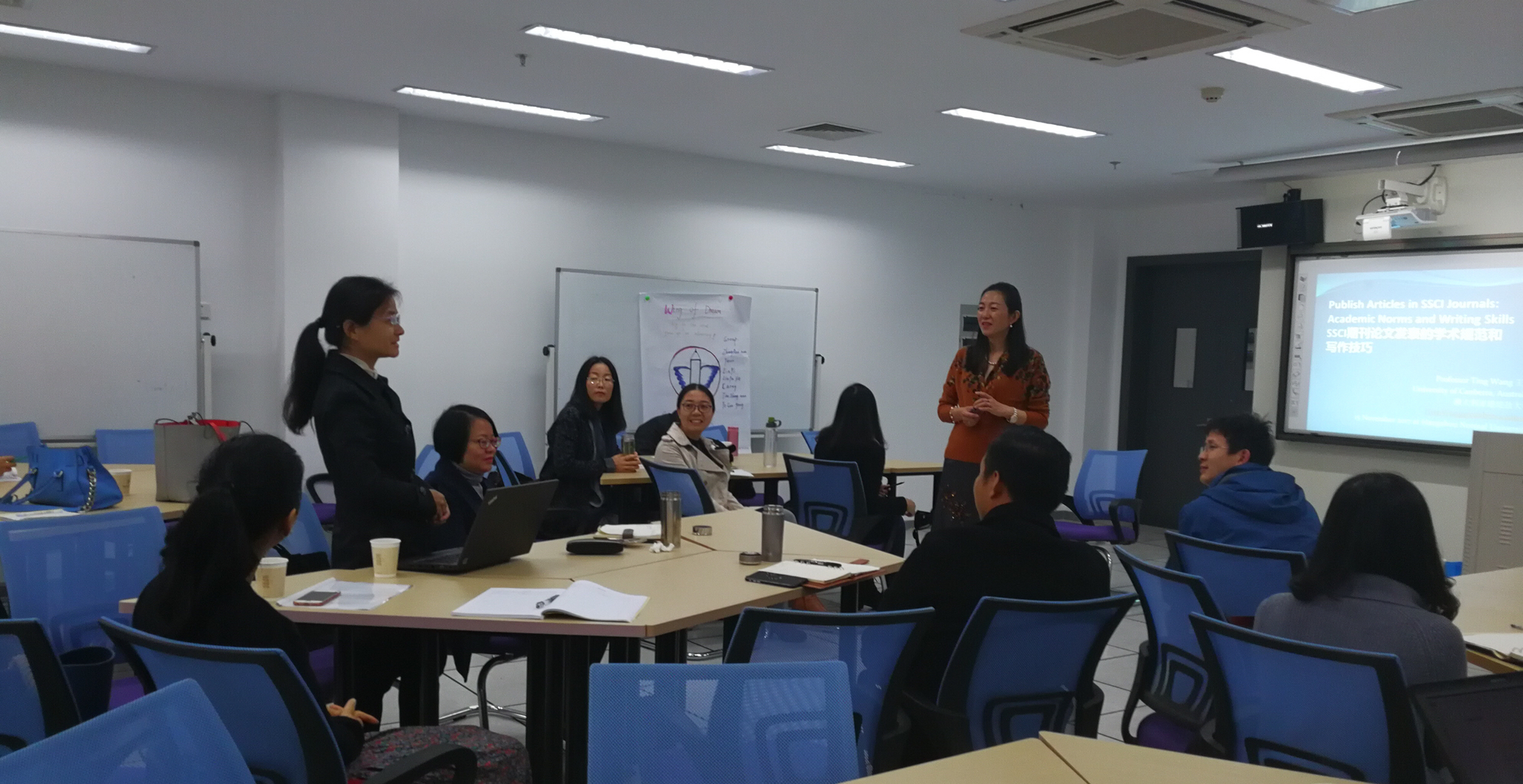 2017月11月15日上午,我校特聘教授澳大利亚堪培拉大学王婷教授与教育学院青年成长营的教师座谈,以“SSCI期刊论文发表的学术规范和写作技巧”主题进行讲座交流。座谈由我院副院长严从根博士主持,20余名青年教师现场聆听了讲座。