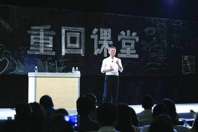 2017年1月,马云在“马云乡村教师奖”年度颁奖典礼的“重回课堂”环节为100位获奖教师授课。