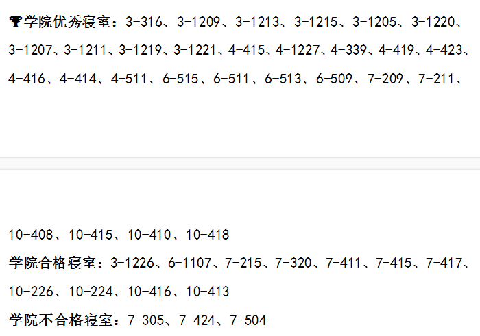 学校文明寝室检查结果—第十六周(2017.12.18-12.22)