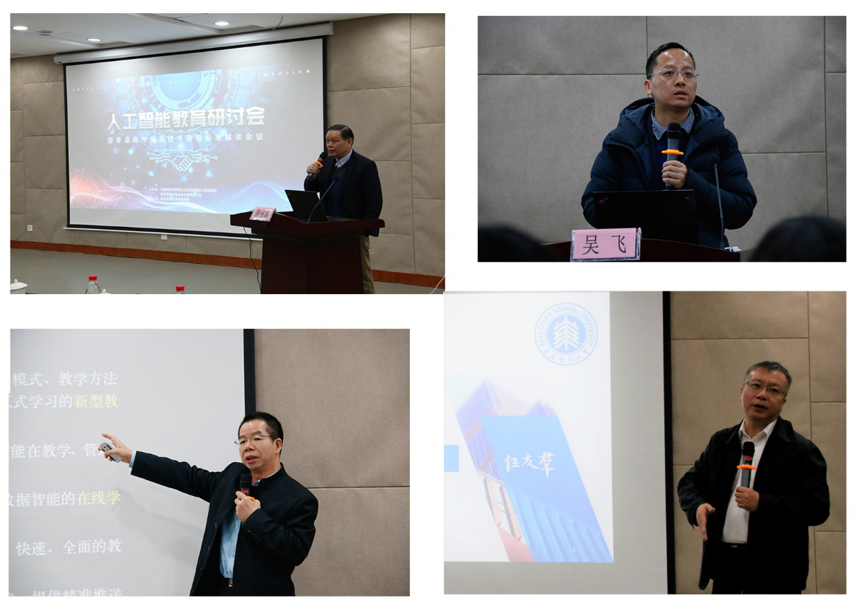 上午,浙江大学计算机学院副院长吴飞教授做了题为“人工智能技术的现状与发展趋势”的报告,教育部黄荣怀教授做了“人工智能融入学校教育:机会与挑战” 的报告,华东师范大学党委常务副书记任友群教授做了题为“融合创新,智能引领:新时代教育信息化发展的思考”的报告。下午,研讨会分会场一,樊磊教授就高中信息技术课标进行了解读,并重点解析了“《人工智能初步》”模块的内容和教材编写方法;研讨会分会场二,与会人员围绕“人工智能教育相关理论与实践”的主题,进行了头脑风暴,开展了热烈的讨论,取得一定的共识。