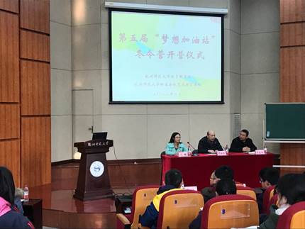 2月3日,由经亨颐学院承办的余杭艺术教育集团第五届“梦想加油站”冬令营开营仪式在恕园7号楼200座顺利举行。参加本次冬令营的是来自仓前中学的100余名优秀初三学子。杭师大继续教育学院院长、余杭艺术教育集团副理事长项红专,经亨颐学院党总支副书记沈嫣,杭师大附属仓前实验中学副校长王春峰等老师莅临现场。
