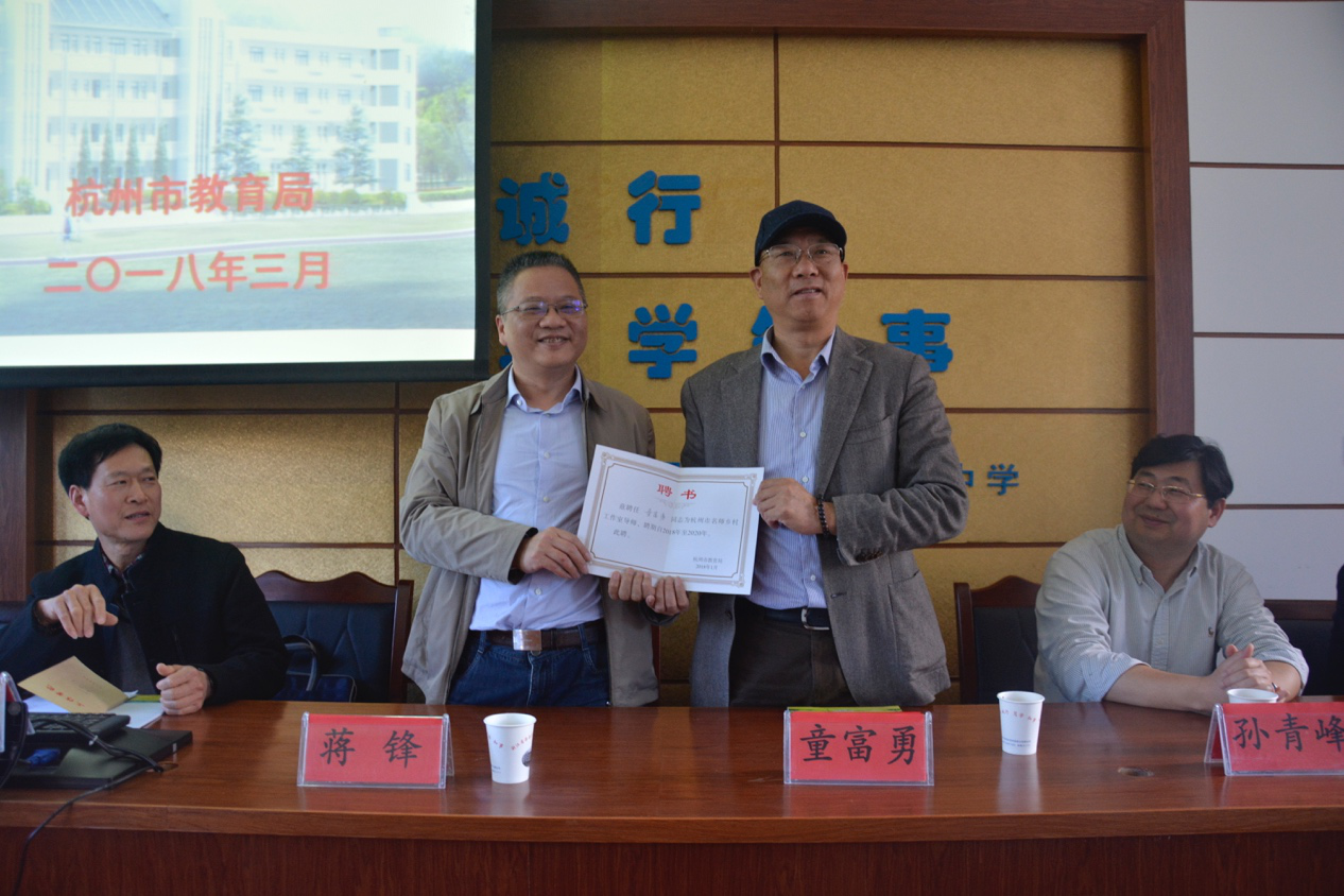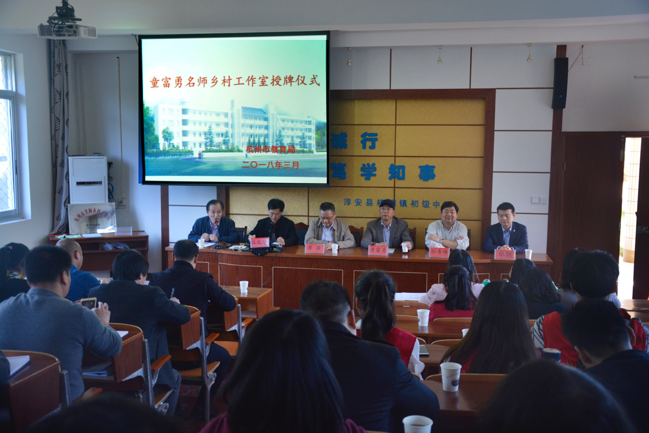 3月28日,暖阳普照,春风习习,童富勇名师乡村工作室的授牌仪式于淳安县梓桐初级中学隆重举行。出席授牌仪式的嘉宾有杭州市教育局人事处处长蒋峰、色情av影片 院长童富勇教授、市教育局交流合作处处长孙青峰、淳安县工会委员江文华、淳安县梓桐镇镇长牟剑以及工作室全体学员和色情av影片 乡村教师技术直通车的志愿者们。