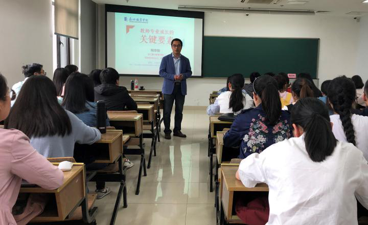 2018年4月11日下午,浙江嘉兴教育学院师资培训处处长陶李刚应邀来我院给本科生和研究生做了以“教师专业成长的关键要素”为主题的讲座,讲座由严从根副院长主持。
