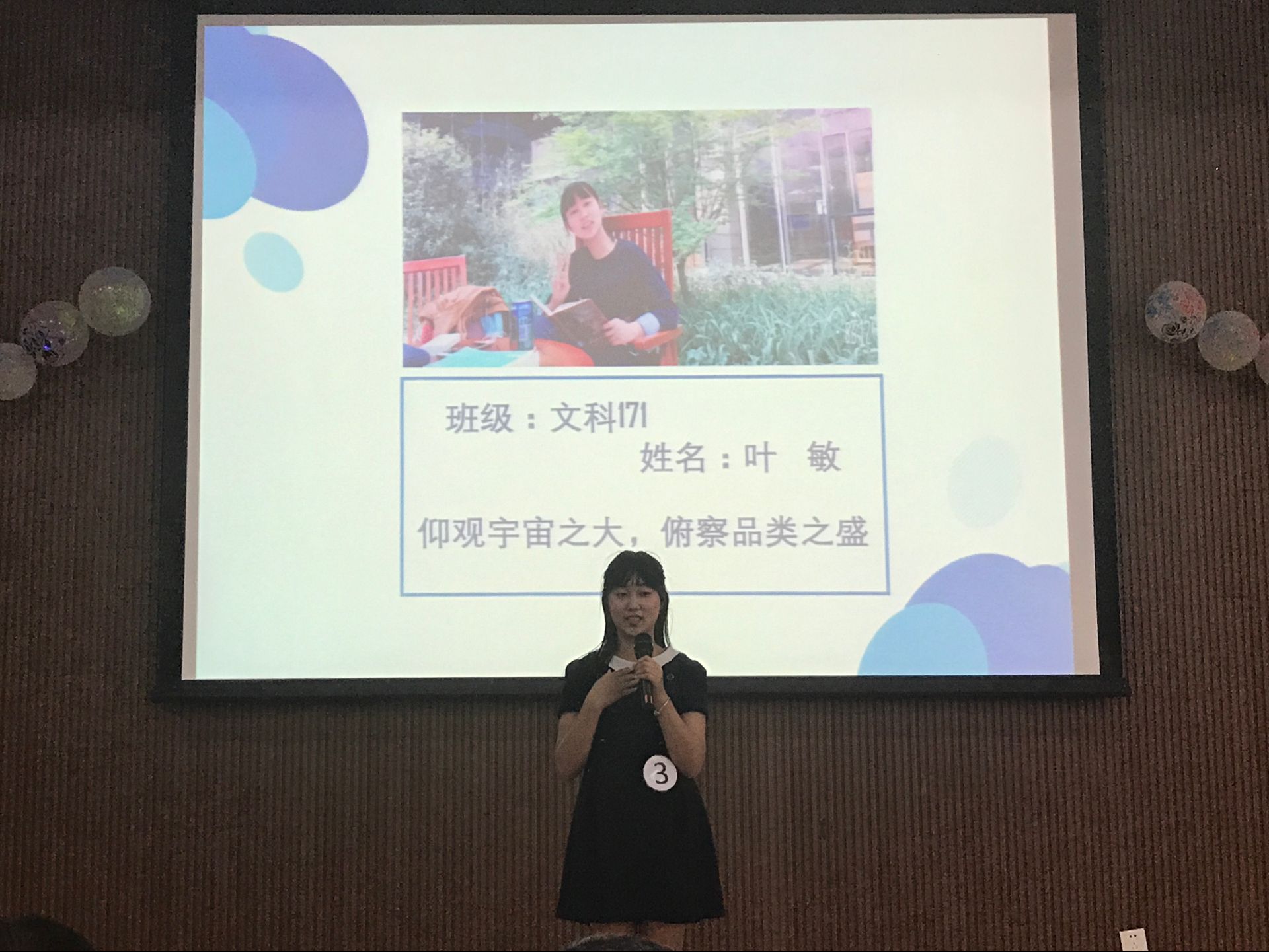 三位评委从主题思想深度、语言流畅程度和演讲的台风技巧等方面给予了选手们客观专业的评价,并选出三位选手:叶敏、郑宇凌、俞丹,成功晋级下一轮。三位选手随机抽取了题目并在台下做两分钟即兴演讲的准备,与此同时,台上有趣的“你画我猜”小游戏进行得如火如荼。游戏环节结束后就迎来了最后的巅峰对决。虽然准备时间很短,但三位选手依然沉着冷静。叶敏、郑宇凌和俞丹选择的漫画主题分别为“别人真的过的好吗?”、“关在手机里的人”和“你为什么不爬出去寻找事物和衣服呢?”。她们由浅入深地对话题进行了精妙的分析,夹叙夹议,整个过程行云流水,非常出彩,赢来阵阵赞叹。
