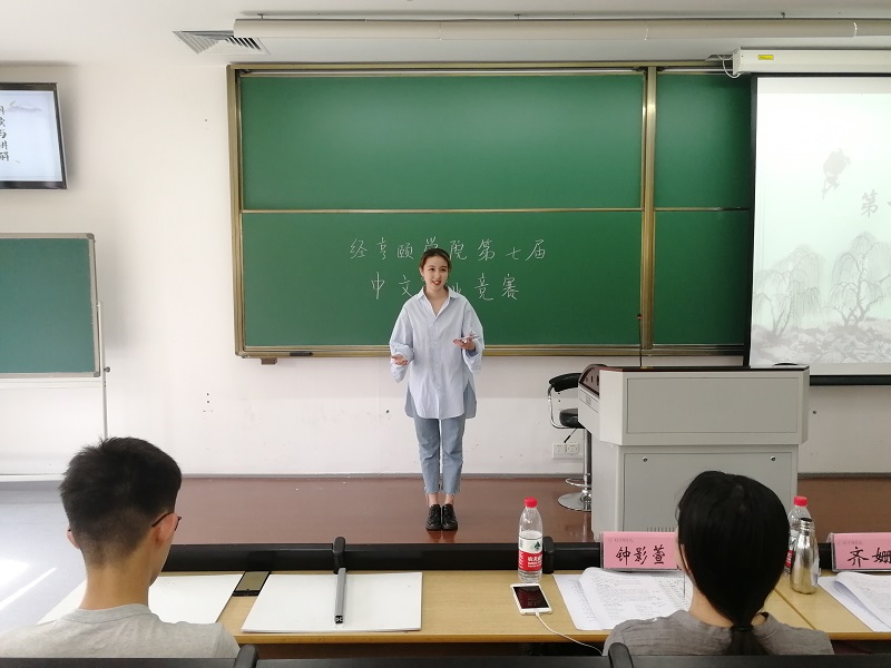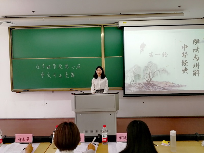 2018年5月4日下午,经亨颐学院第七届“一人一赛”学术竞赛节之中文专业竞赛“中华经典诵读”竞赛于恕园13号楼201教室正式开始。本次竞赛的到场嘉宾有经亨颐学院辅导员齐姗老师、兼职辅导员何秋玥、校广播台台长钟影萱。