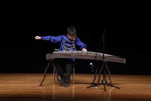 音教171韩宇同学的中场表演《帕斯皮叶舞曲》后,比赛进入激烈的专业组比拼,音教171胡昇带来的古筝《绣梦》,曲调婉转动听仿佛为观众引来一位位水袖翩翩,裙袂涟涟的古雅女子;