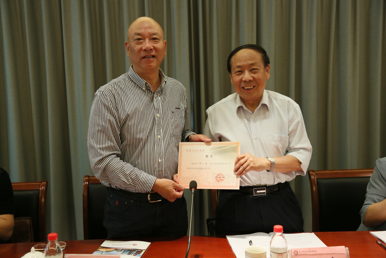 全体与会校友代表审议通过了校友理事会成员和职务的建议名单。杨一靑、吕静任会长,王家祥、陈永华、潘金龙任副会长,蒋璐敏任秘书长,高长虹、沈鹿韵、姜鹏任副秘书长。杨一靑老师作为校友理事会成员代表接受了学院授予的聘书并发言,他表示自己是杭师大的见证人,对杭师大有着深厚的感情,并提出校友理事会应该采取一系列举措促进校友会和教育学院同发展。
