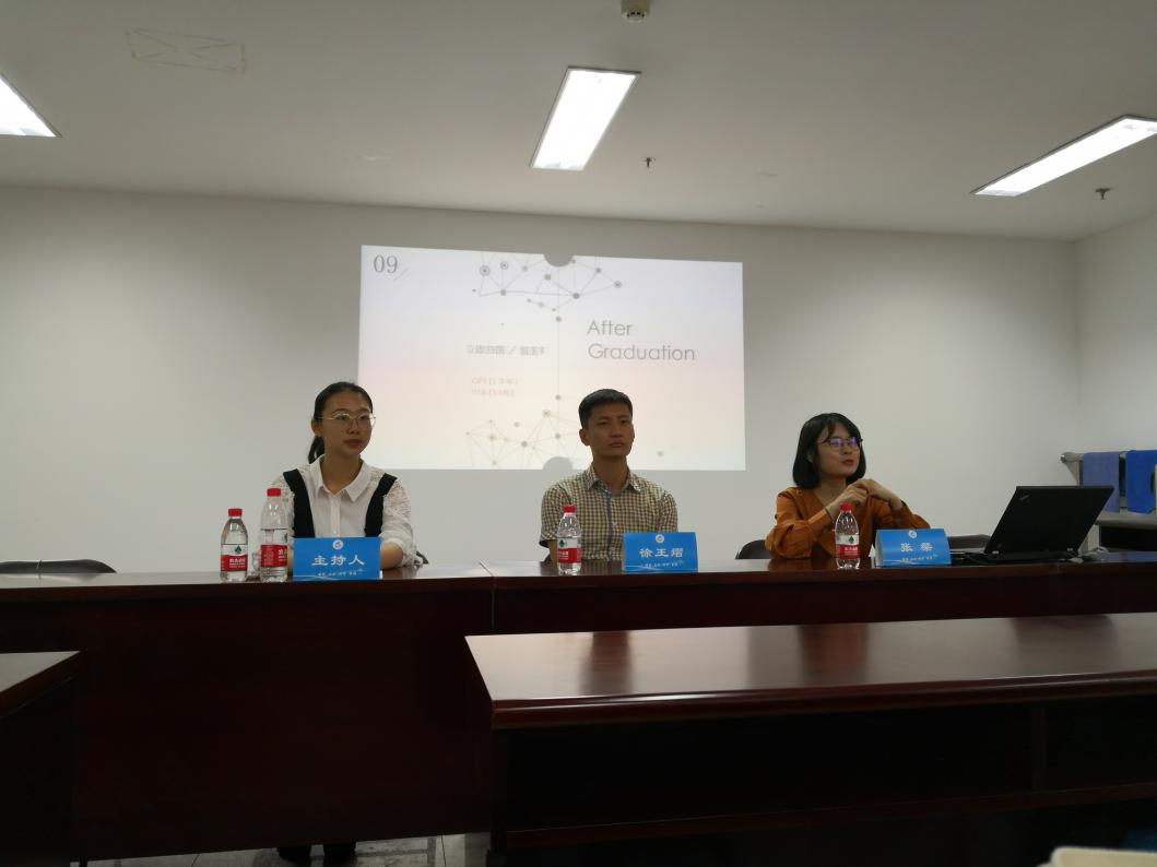 本次座谈会共分为两个环节。首先,两位优秀校友向在场同学分享了自己的学习经历。校友徐王熠以“读博,你准备好了吗?”为主题,分享了自己我校本科和研究生阶段的学习经历以及在华东师范大学读博时期的心得感悟。校友张粲赴美国海德堡大学深造,且在两年时间内,获得了教育学硕士和会计学硕士两个学位。她就自己的人生历程,谈了在选择深造高校、转专业过程中的体会。
