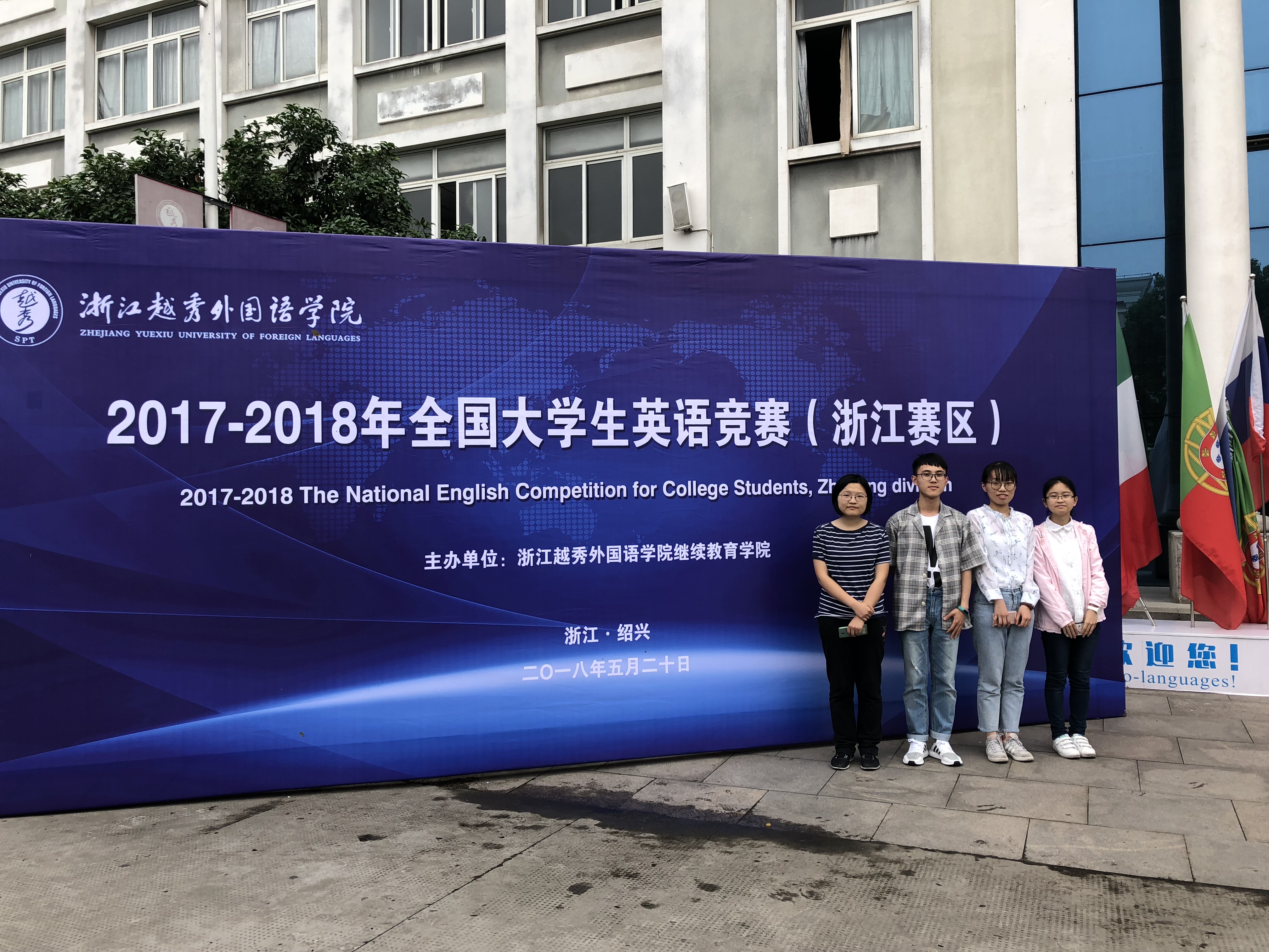 我院罗盛兰同学(左一)喜获2018年全国大学生英语竞赛浙江赛区特等奖并晋级国赛