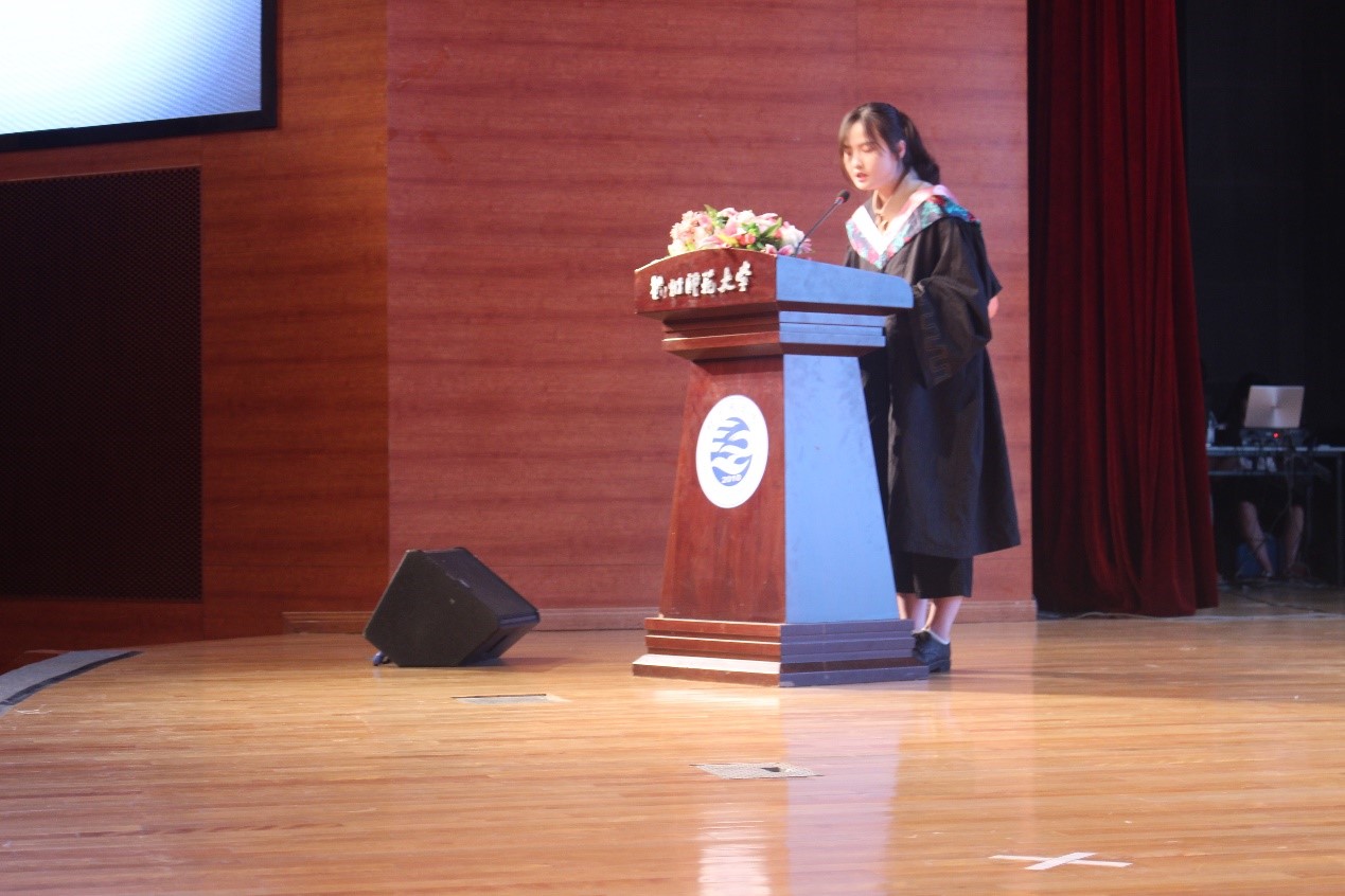 典礼以含有毕业生照片的PPT开场,记录了毕业生从青涩走向成熟的点滴,以及对这个生活了四年的校园的眷恋之情。毕业典礼由经亨颐学院党总支副书记沈嫣老师主持,与会嘉宾有经亨颐学院院长、党总支书记郑生勇,副院长叶哲铭、蒋永贵,励志导师、学科教师代表和毕业生家长。