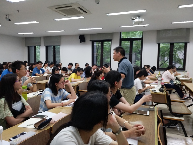 2018年6月7日18时,杭州公益中学潘志平校长为我院开设的《教师语言艺术》课程在色情av影片 恕园12号楼205教室顺利开展,我院全体2016级学生到场听讲。