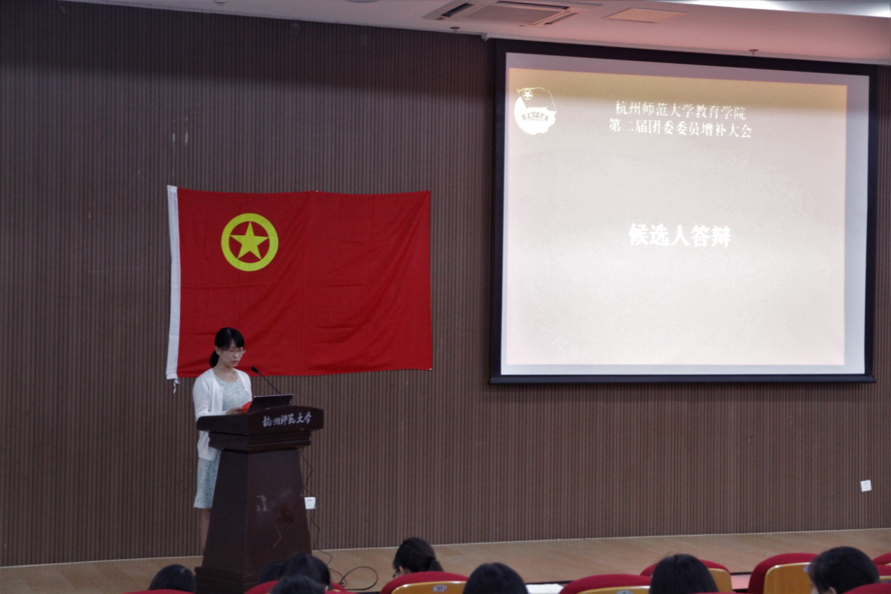 在答辩环节,候选委员们通过形式风格不一、各具特色的精彩演讲,回忆了在团学工作中的成长进步、收获的实践经验和珍贵友谊,也阐述了自己的竞争优势、工作理念和就职规划,同时还抒发了对团委未来发展的美好愿望。答辩结束后,各团支部代表进行了填表投票。