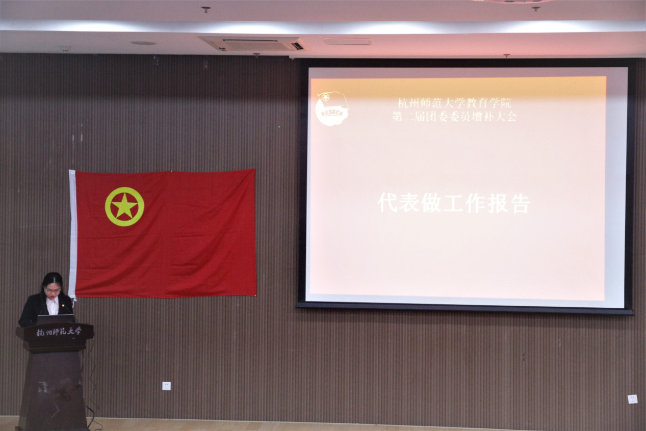 教育学院现任团委副书记严倩帆同学以团委工作的发展方向为主线,结合过去经验、团队现状和未来期望三个方面,从提升组织管理理念、聚集团队个体力量、创新团队各项实践、建立主体引领思维、加强自身风貌建设五个方面具体展开工作汇报,同时向所有为之付出的师生表示感谢。