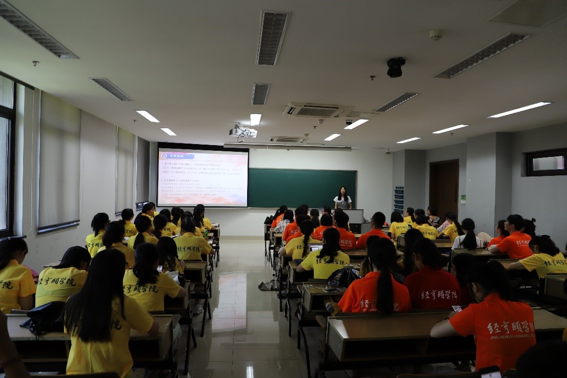 图为李依婷同学介绍暑期社会实践的总体安排