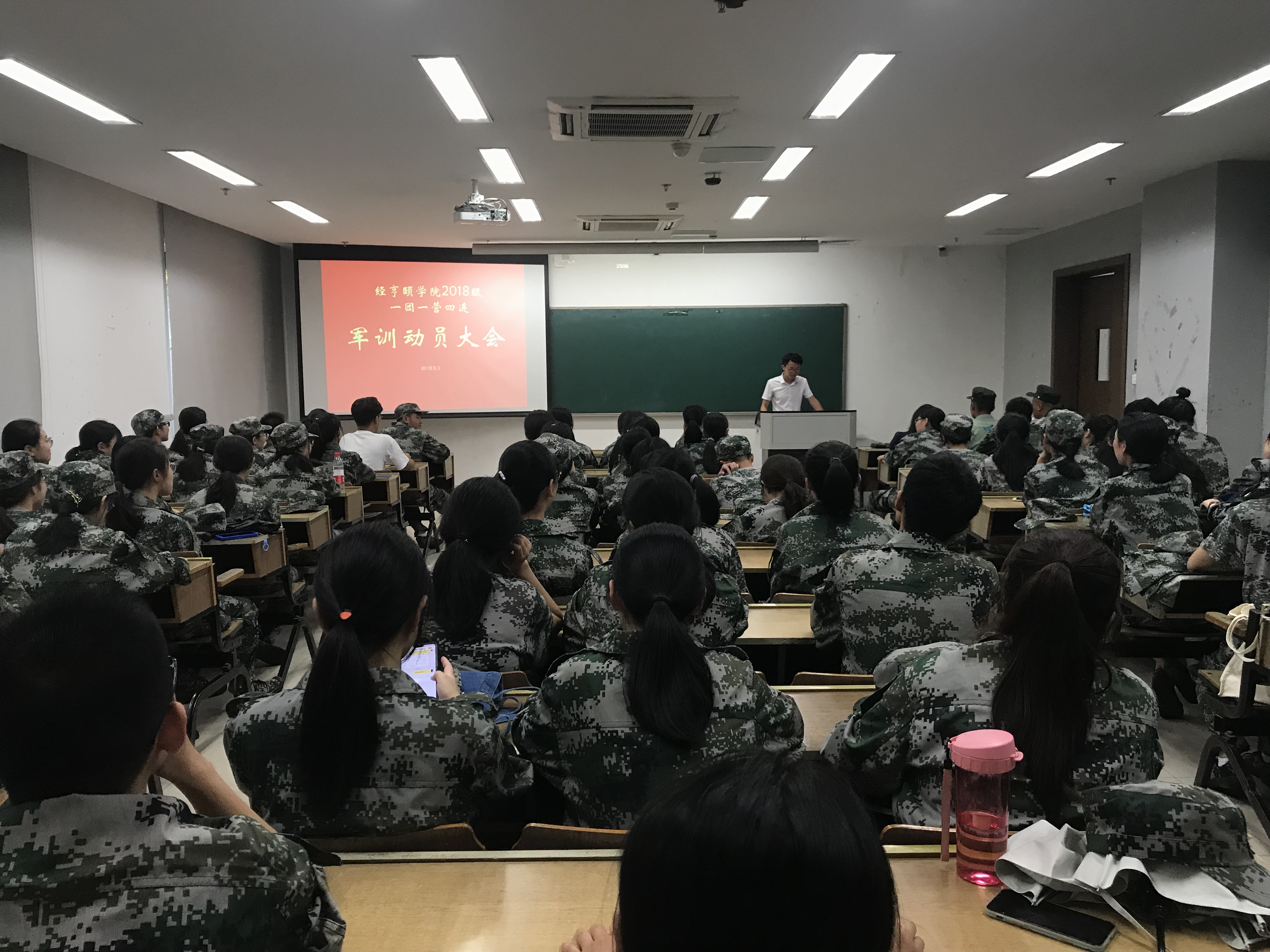2018年9月3日下午,经亨颐学院2018级军训动员大会在恕园11-107顺利举行。本次大会由经亨颐学院辅导员毛少汉老师主持, 2018级全体新生及新生学长共同参与。经亨颐学院党总支副书记沈嫣老师、辅导员张伟闯老师以及军训教官出席会议。