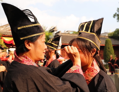 小经亨颐们换上了汉服,齐候大殿前,新生典礼正式开始。由蒋永贵副院长宣读2018级新生名单后,全体新生肃整衣冠,目送师长代表上台敬香,而后三拜祭孔。“师者,所以传道授业解惑也。”“敬茶献师”、“养正启智”,这些仪式的背后承载了满满师生情。对于意在培养卓越教师的经亨颐学院来说,今日新生以茶敬师,是对未来师者的尊敬,也希望能以此树立日后从教的榜样。