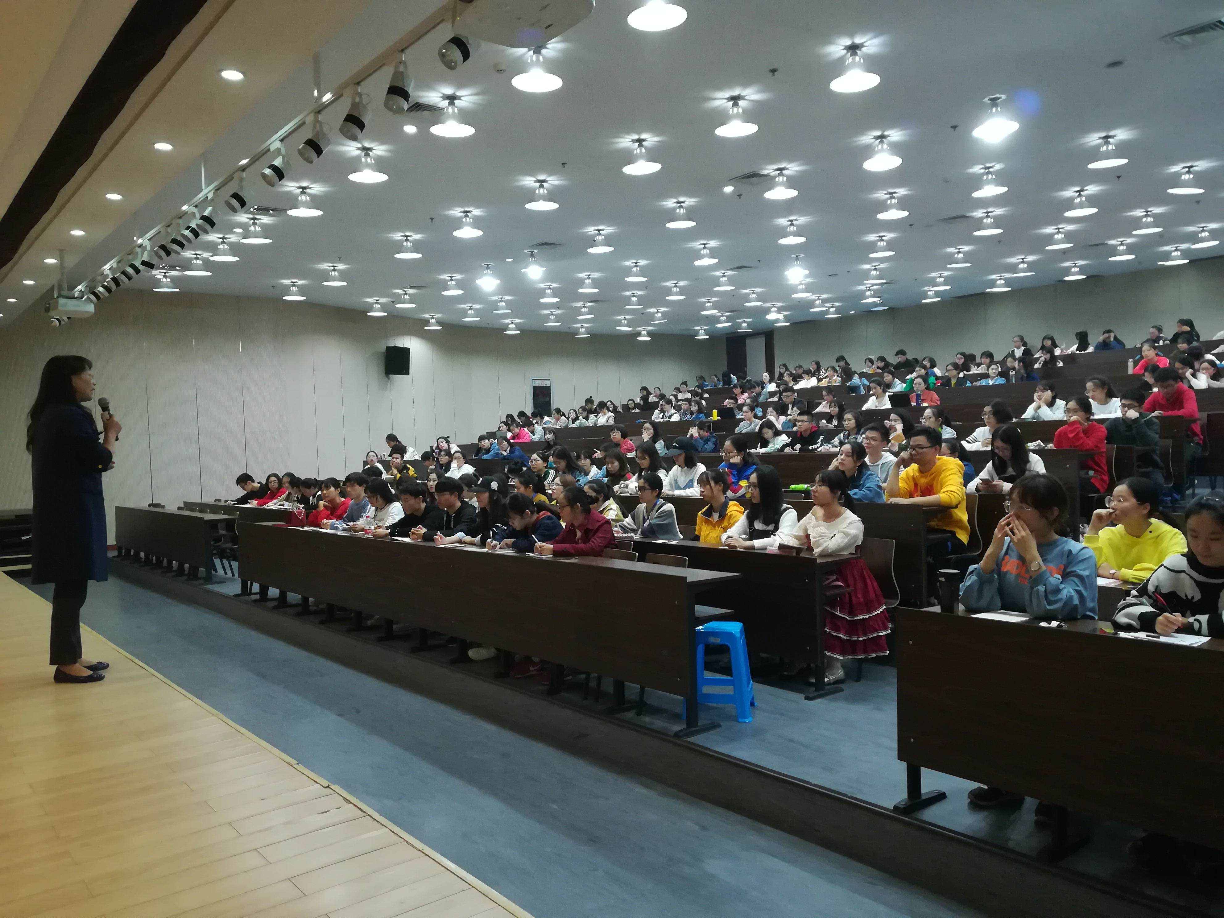 20181025日下午,教育学院召集学生干部和党员、入党积极分子300余人在恕园2-112开展学风建设动员会,学院副书记蒋璐敏老师和各年级辅导员到场动员。