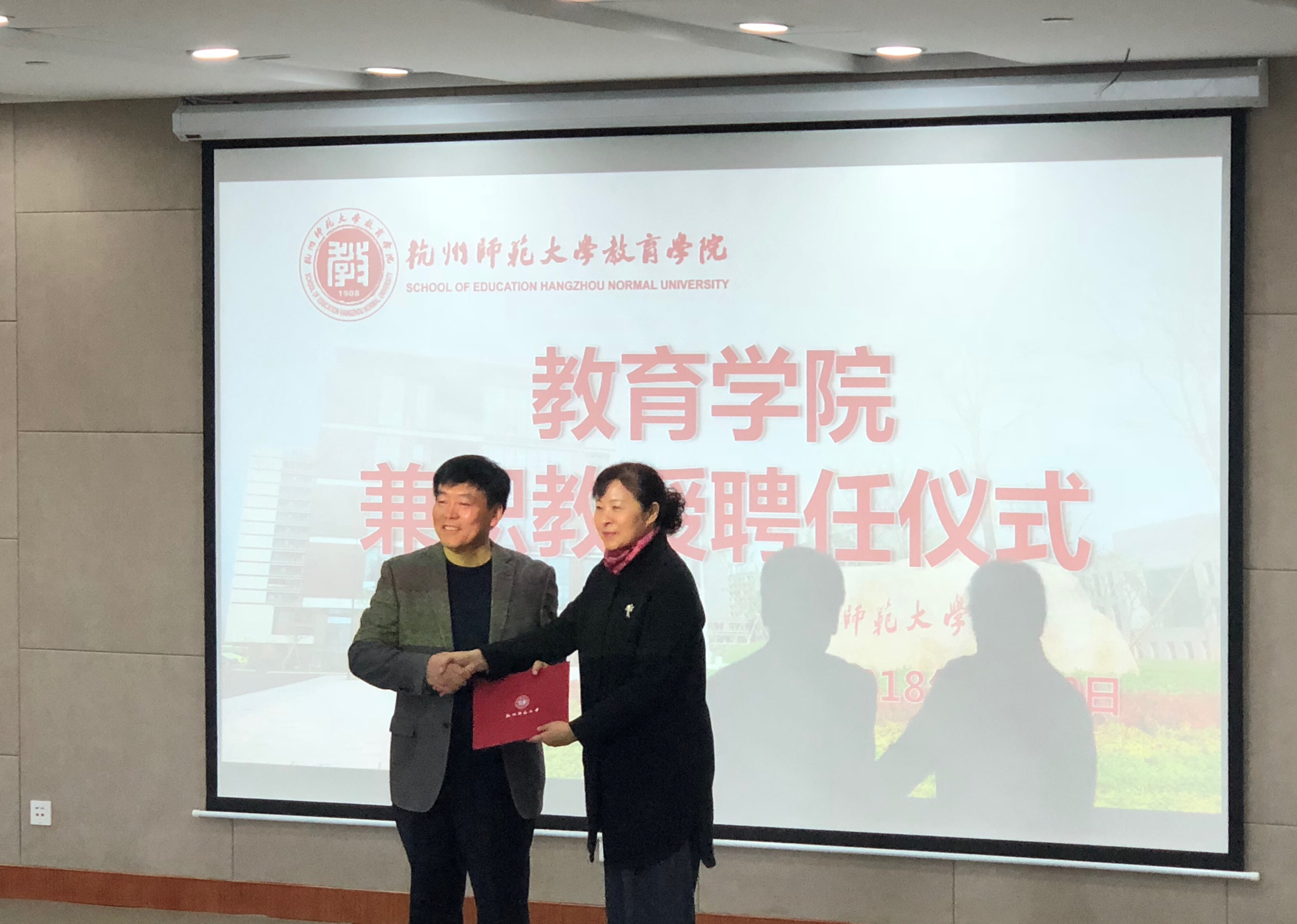 学术讲座开始之前,在孙德芳副院长的主持下,我院为鲍东明教授举行了兼职教授聘任仪式,鲍东明教授正式受聘为我院特聘教授,吕静书记颁发聘书。