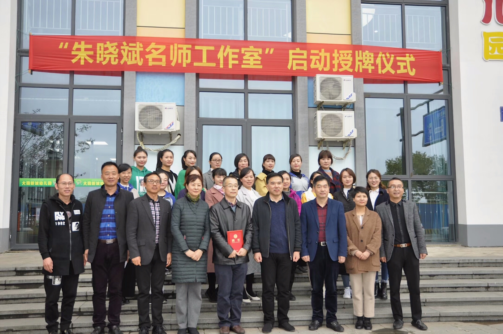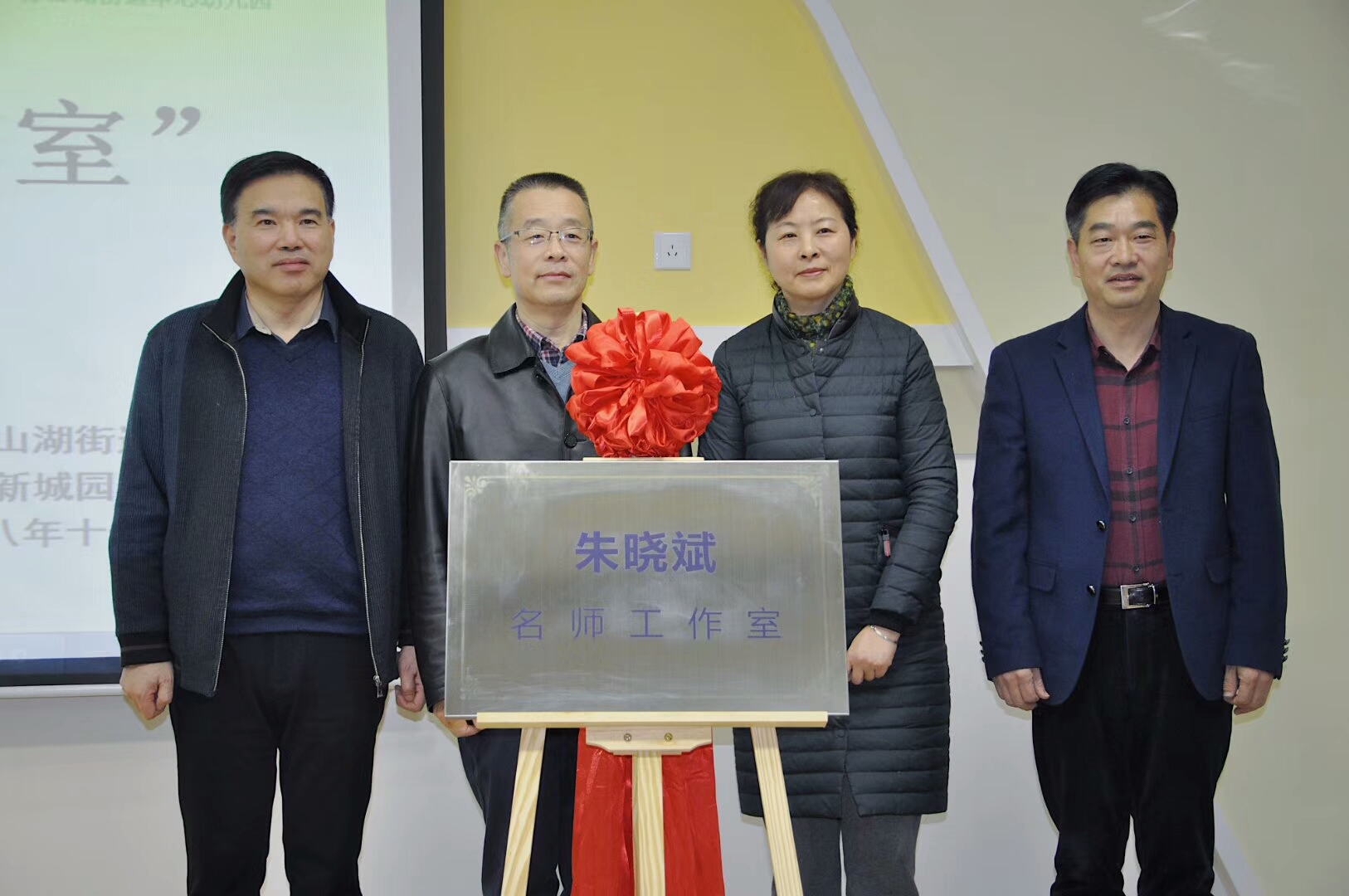 11月19日下午,“朱晓斌名师工作室”揭牌仪式在临安区青山湖街道中心幼儿园大园新城园区举行。浙江省教育厅学前教育处处长王振斌、临安区常委何军、临安区教育局局长章威力、临安区教育局党委委员楼伟民、临安区教育培训中心书记胡爱军、临安区教育培训中心幼教教研员陶沫岚,我院党委书记吕静、学前教育系系主任朱晓斌教授、名师工作室首批18名成员和临安区各幼儿园教师代表出席仪式。