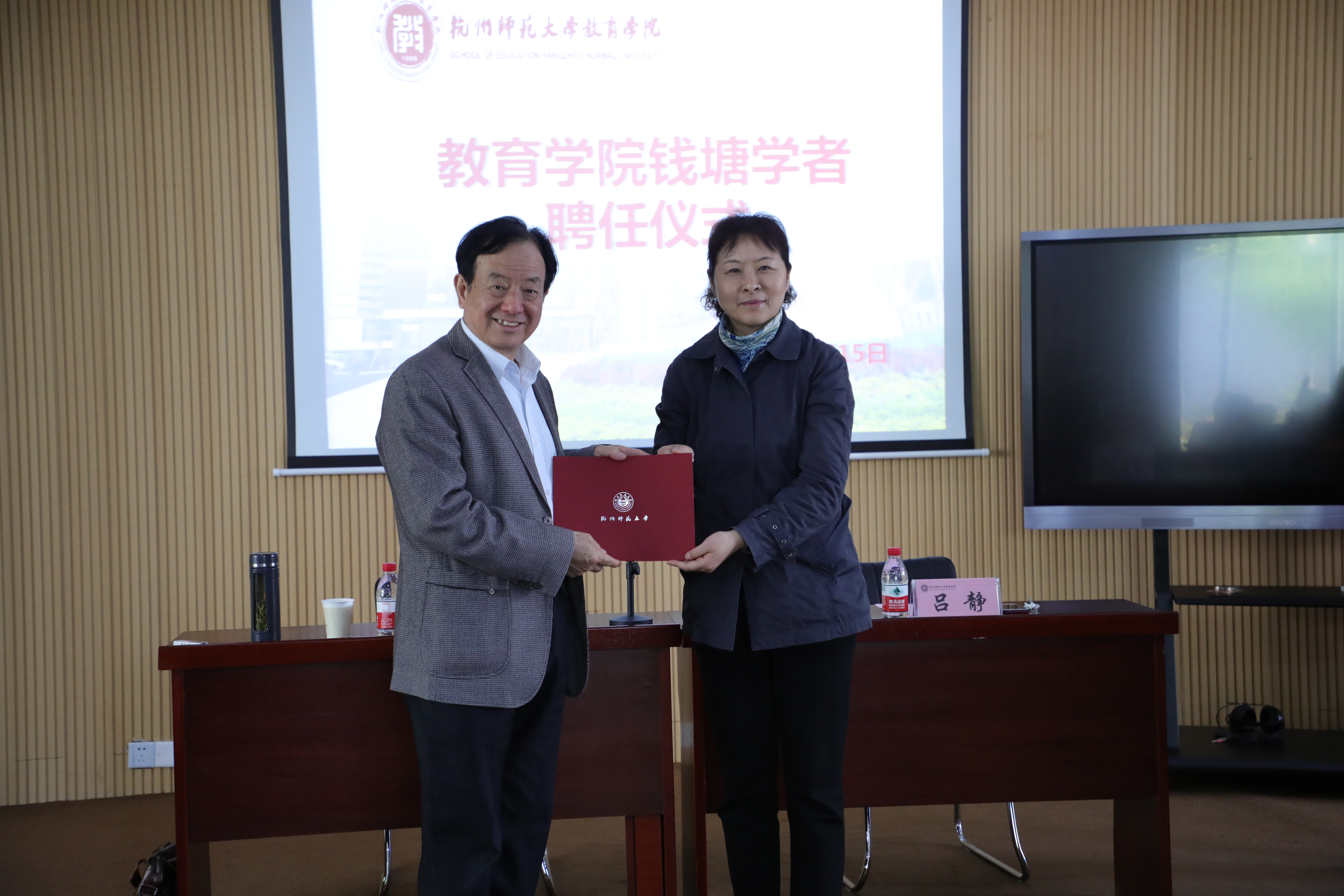 太炎教育讲堂开始之前,在丁星教授的主持下,我院为田耀农教授举行了钱塘学者聘任仪式。田耀农教授正式受聘为我院钱塘学者,吕静书记代表学院为田教授颁发聘书。