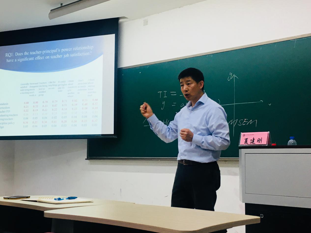 2019年5月23日下午,于色情av影片 仓前校区恕园14-103展开主题为“高级统计模型在教育领导力研究中的应用”的学术讲座。主讲人为美国内部拉斯加大学(林肯)助理教授夏建刚老师,其主要研究方向为学校领导与管理中的领导力理论。本次讲座由王凯教授担任主持。杭师大教师教育相关专业研究生一起聆听了本次讲座。