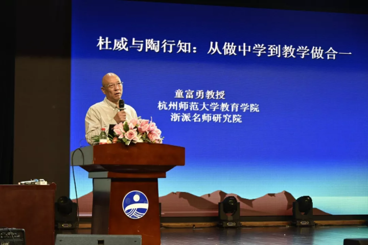 童富勇教授系统介绍了杜威“从做中学”思想与陶行知“教学做合一”的联系与区别,他认为教与学都要以做为中心,以生活为中心实现教学做合一。