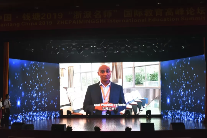 马里松代表杭州市教育局致辞,指出本次论坛是钱塘新区为推进教育国际化所搭建的良好平台载体。