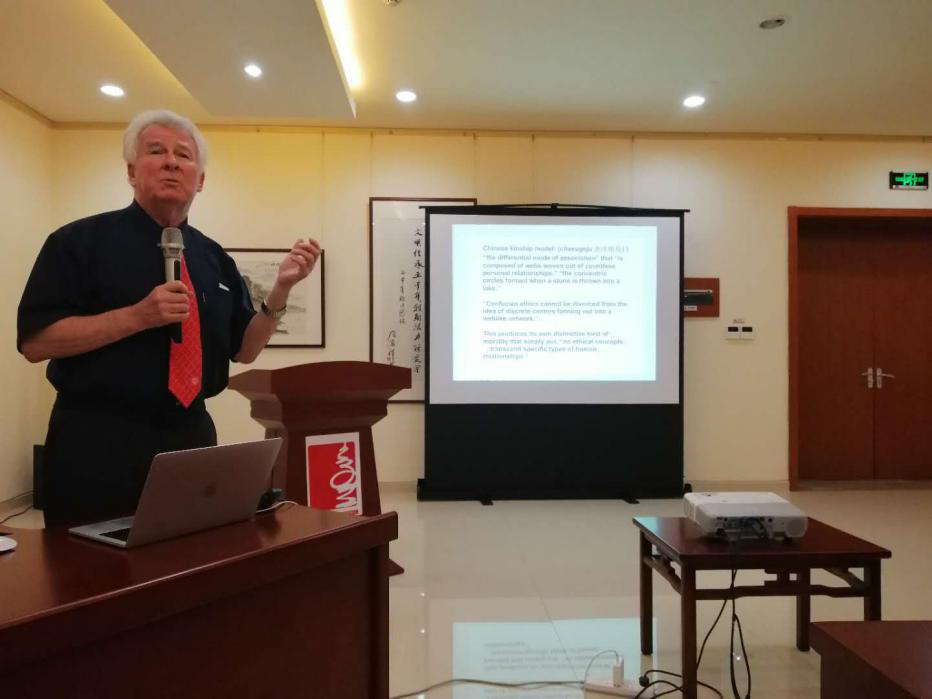 著名汉学家、北京大学安乐哲(Roger Ames)教授作了题为“儒学教育与世界文化秩序变革”的报告。探讨了“儒家哲学是一种教育哲学”的观点,揭示了儒家哲学能够兼具古典与现代的特征、历久弥新之所在的教育生命力,并从“礼”、“仁”、“道德”等角度展示了中国本土哲学的特征,暗示了儒家教育哲学将在随后几十年世界文化秩序变化中占有重要地位。