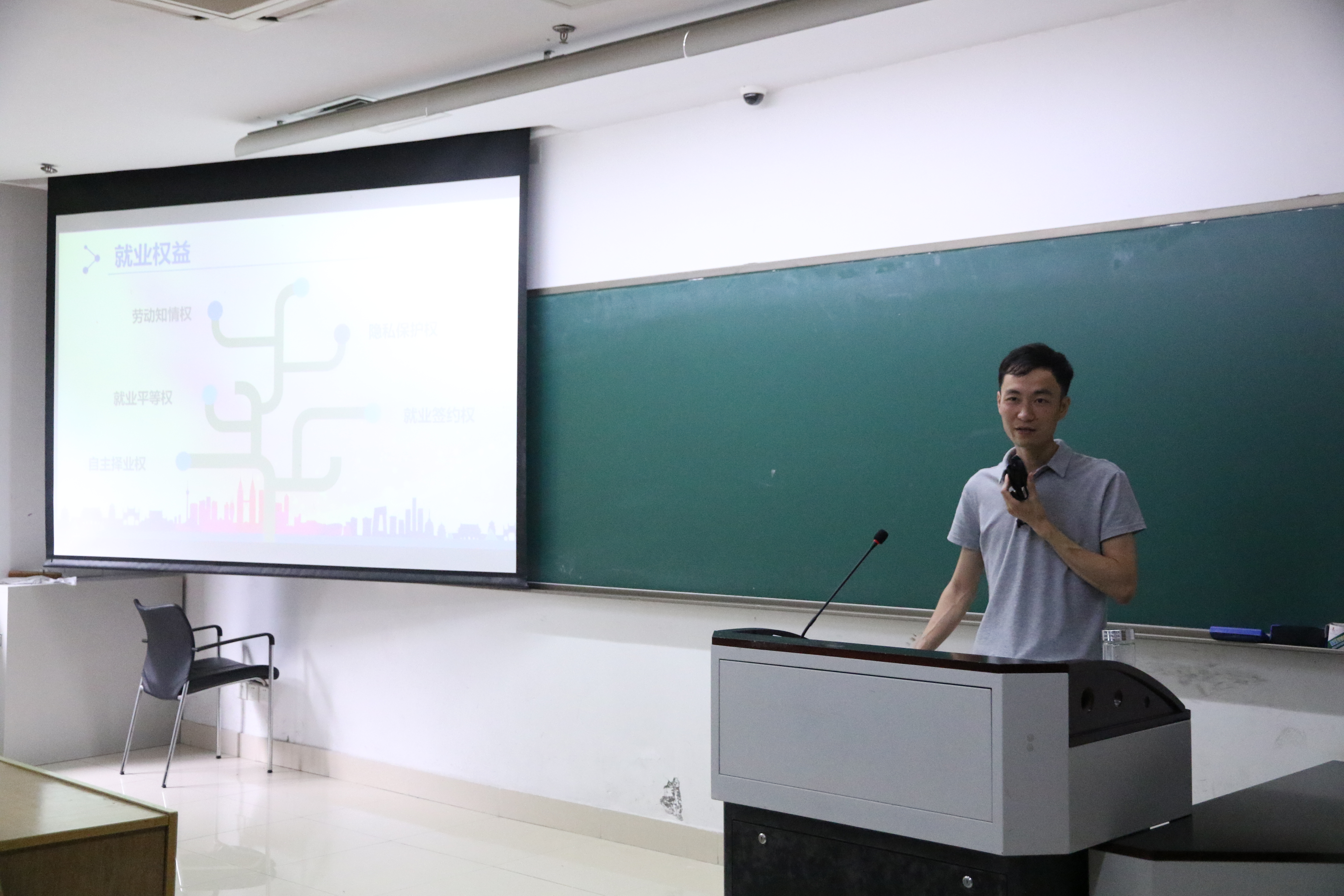 为了让同学了解就业权益以及合理维护就业权益的重要性,我院于6月27日上午在恕园11号楼开展了“就业权益保护”的讲座,全体16级同学参与此次讲座,主讲人是来自沈钧儒法学院的马利峰老师。