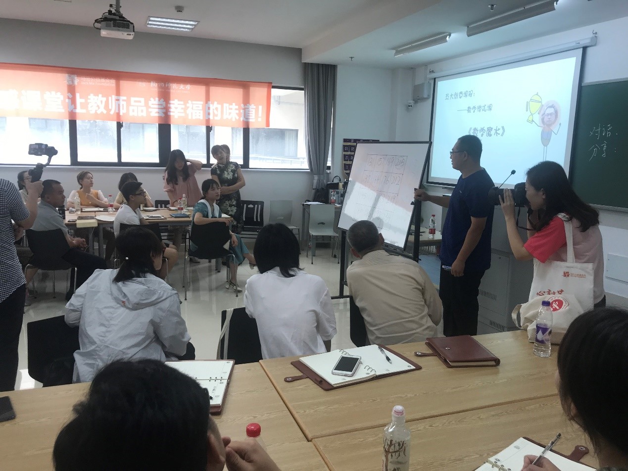 7月12日,参加2019年暑期研修的“马云乡村人才计划”380余名学员开始了工作坊研修。本次工作坊分“学校班级管理”、“学科教学创新”和“课程开发建设”三大系列,18个主题坊均由学员自主选择确定,在12日和14日分两轮以走班上课的方式组织实施。工作坊设计理念先进、教学内容丰富、授课形式多样,这样的设计能实现以学习者为中心,满足学员多元化、个性化的需求。
