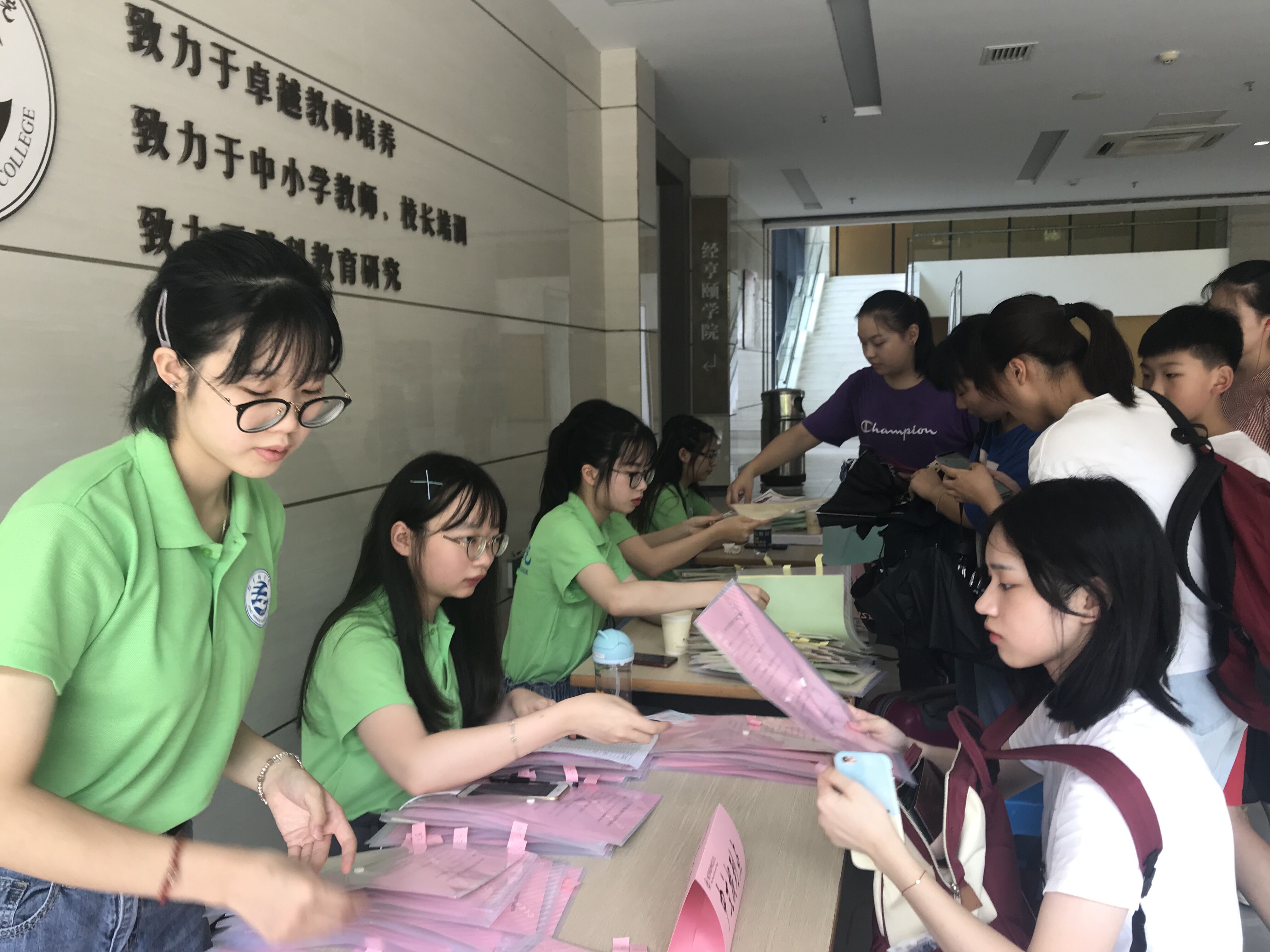 2019年8月14日,我院2019级考生第一次与学院相遇。这一天,也是经亨颐实验班2019年招生选拔的报道日。为了顺利开展选拔工作,我院在恕园7号楼设置了报到咨询点,并安排了志愿者来引导学生报到办理住宿。