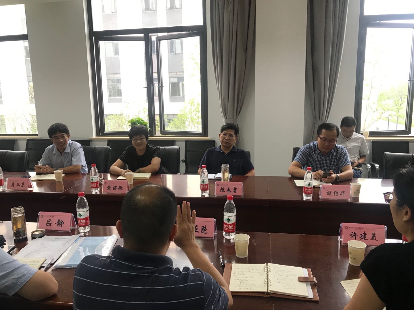 陈书记认真听取了学院的汇报,对学院所做的工作包括暑期搬迁和新院区新学期开学运行工作给予了肯定,并对学院领导班子和新学期的学院工作提出了要求。他强调,新学期教育学院领导班子要重点做好两大学科申博、心理学科建设、巡察整改、人才引进和安全稳定五件事情。他希望教育学院班子成员进一步发挥战斗力和凝聚力,争取做出更大贡献。