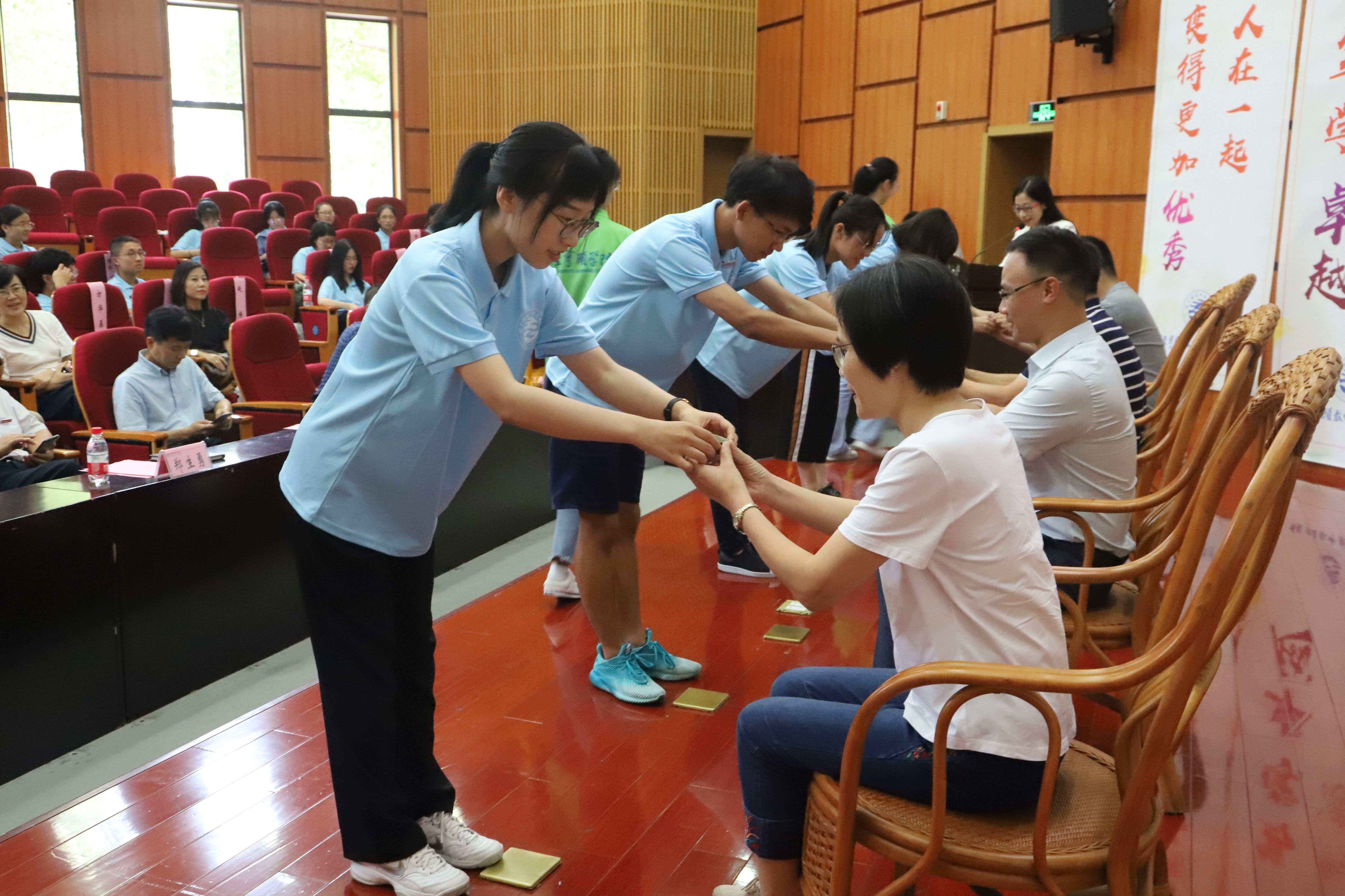 开学典礼上,这个环节庄重而特别。新生代表们向我们的励志导师敬茶拜师。这杯茶,代表着同学们的真诚与敬意;这杯茶,也代表着老师们的付出与感动。同学们递出茶杯,递出的也是一份对未来的期待;老师们接过茶杯,接到的是一份沉甸甸的敬意。感动之余,励志导师代表陈礼珍进行了简短的发言。他以幽默诙谐的语言告诉同学们要记住今天,记住美好未来开始的这一天。“希望二十年后,你还能记得自己加入经亨颐学院时的激动之情,还能记得来到这里想要实现的目标。”
