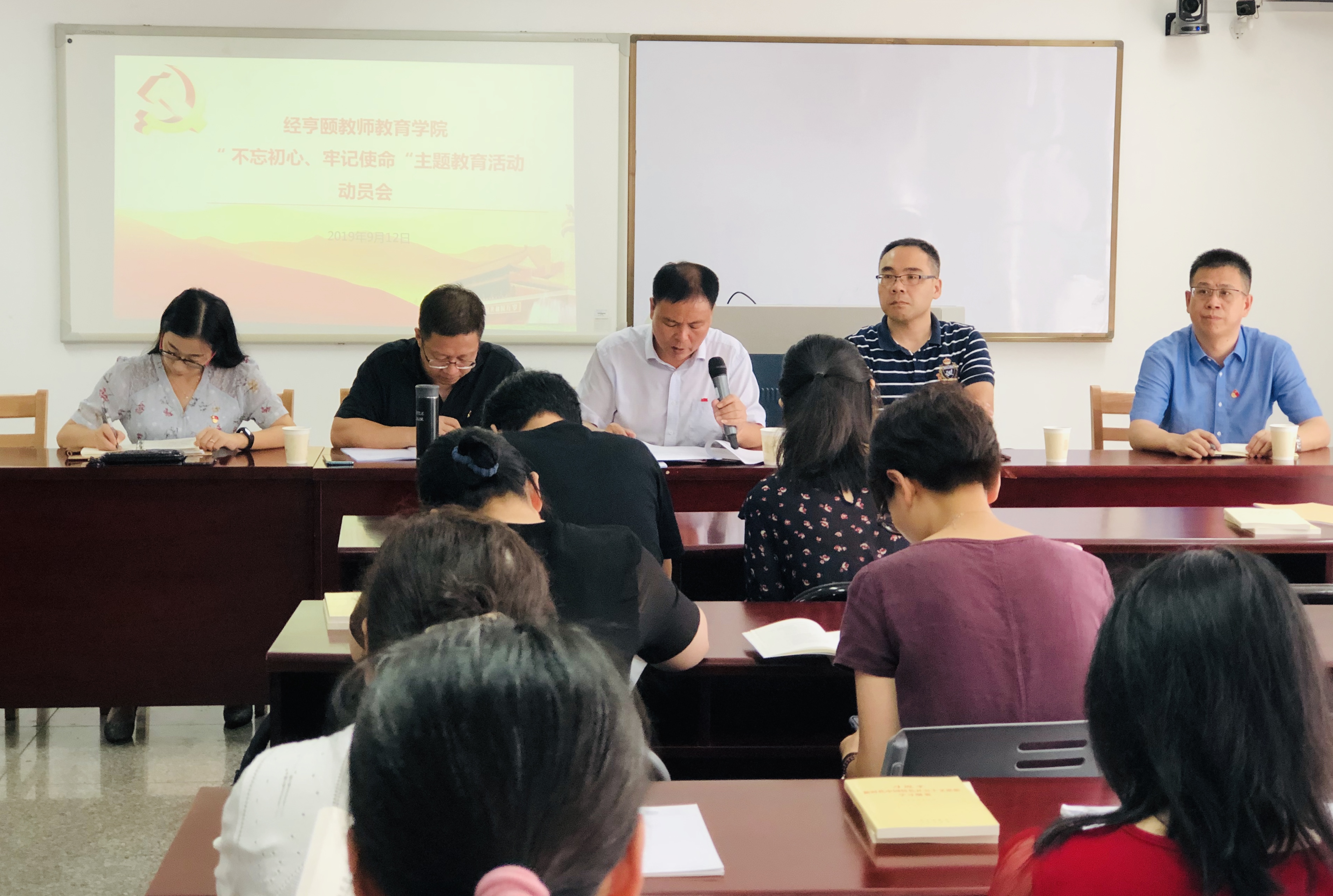 9月12日,经亨颐教师教育学院党总支召开“不忘初心、牢记使命”主题教育工作动员会,传达学校主题教育工作会议精神,对学院主题教育进行动员部署。