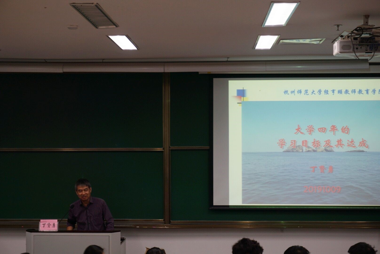 10月9日下午,我院先进教师典型事迹宣讲会在恕园9号楼举办。本次讲座主讲人为全国优秀教师丁贤勇教授,全体2019级新生和部分老生参加了本次讲座。