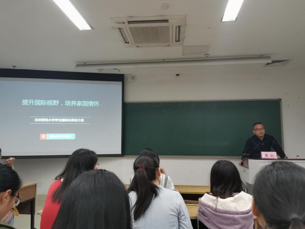 10月13日晚,我院19级大学生国际交流项目宣讲会在恕园11号楼举行。本次讲座主讲人为校国际处曹安老师,全体2019级新生参加了本次讲座。