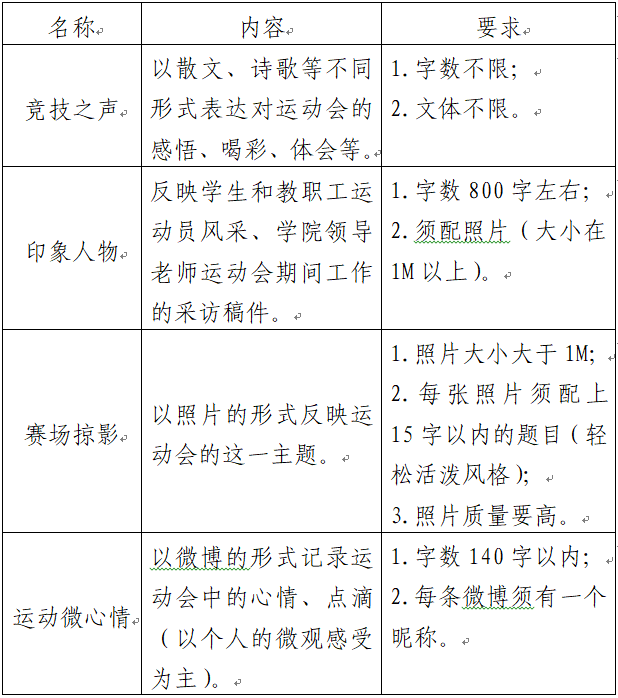 6.运动会稿件与照片经录用可加个人综合素质分,一份照片或一篇稿件被学院录用加1分,被学校录用加2分。