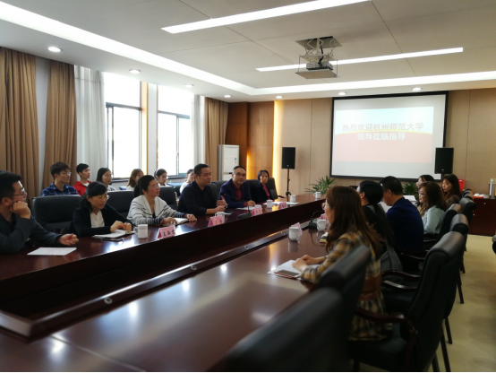 2019年10月24日下午三时,我校副校长方亮、教务处副处长吴泠、理学院党总支书记王淑君、我院教学副院长蒋永贵一行走访杭州市紫金港中学看望实习生。