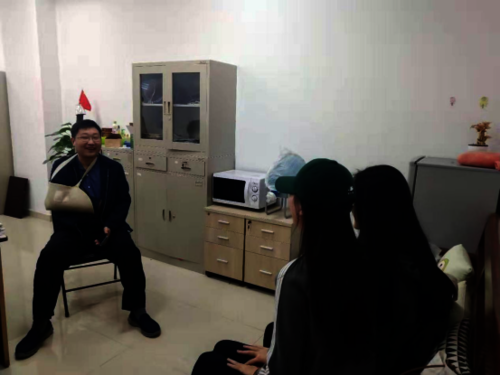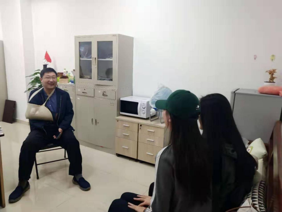 2019年10月28日下午20:0,第62期发展对象第十二小组成员在师生活动中心419团委办公室展开对优秀党员张磊老师的访谈。