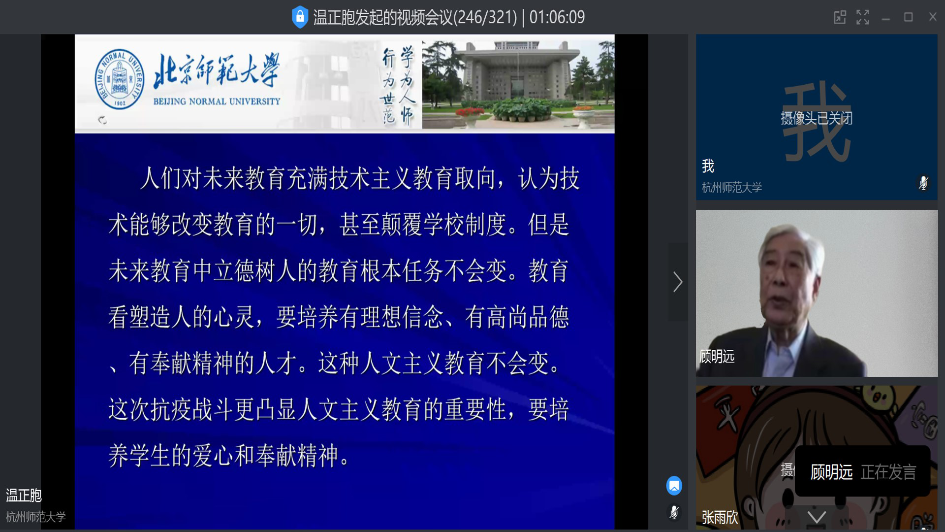 顾明远先生做客太炎教育云端讲堂第一讲