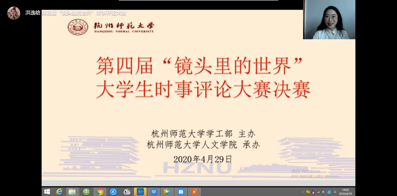 4月29日下午,我校通过钉钉直播平台举办了第四届“镜头里的世界”大学生时事评论大赛决赛。